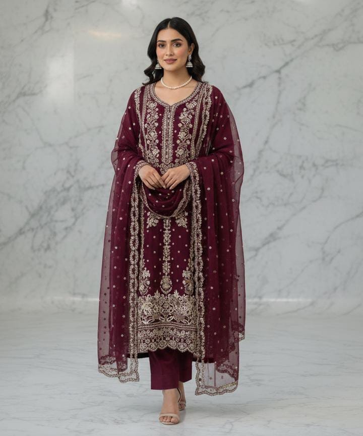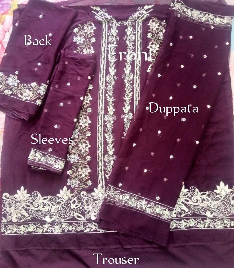 2.54 Mtr EmbroideredChiffon Dopatta